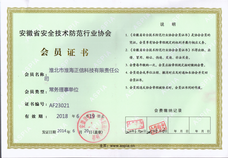 安全協(xié)會會員證書
